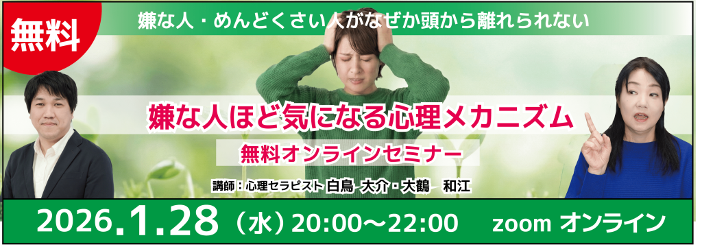 【無料オンライン心理学セミナー】なぜ、嫌な人ほど頭から離れないのか?のお知らせ